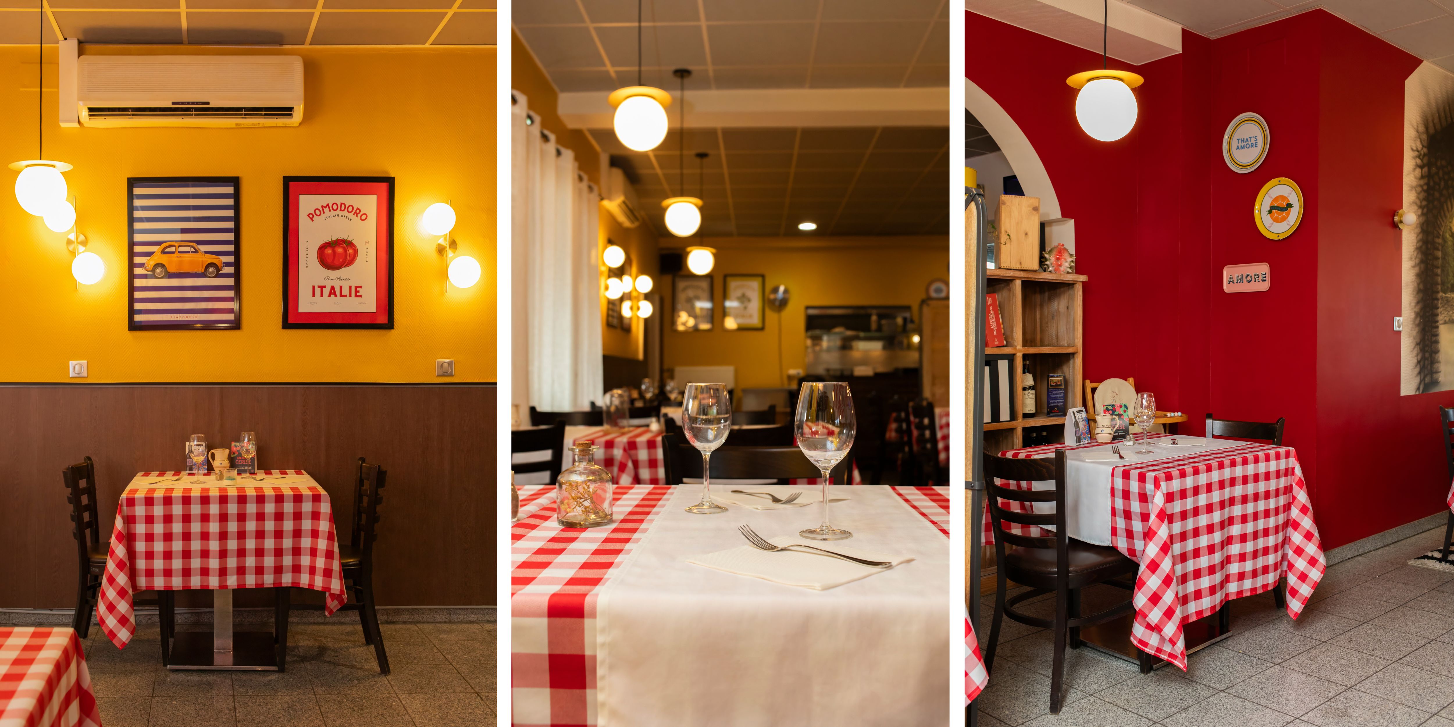 Cet établissement manquait d’un coup de neuf et de chaleur après une ouverture il y a bon nombre d’années. En choisissant de revenir aux sources de l’Italie profonde, il a fallu amener une atmosphère plus conviviale avec de la couleur, des essences de bois, des tissus aux sols, fenêtres, nappages pour raviver l’âme calabraise, un budget modère a été alloué pour les peintures, luminaires, mobilier, tissus, décoration murale, petite décoration et quelques mobiliers.
